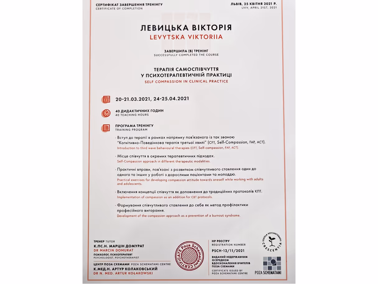 Міжнародна сертифікаційна програма Compassion-Focused Therapy, 2021 р.