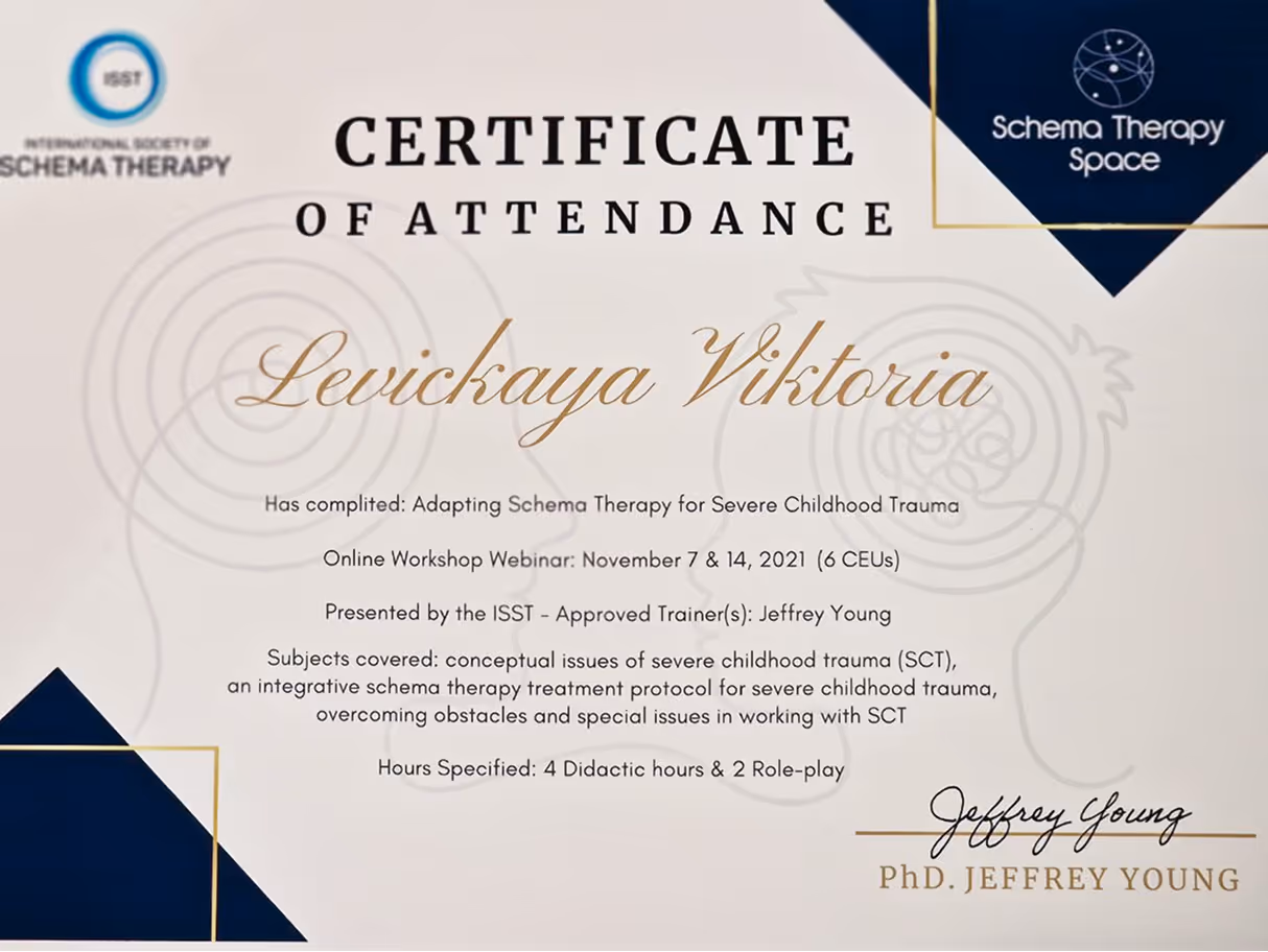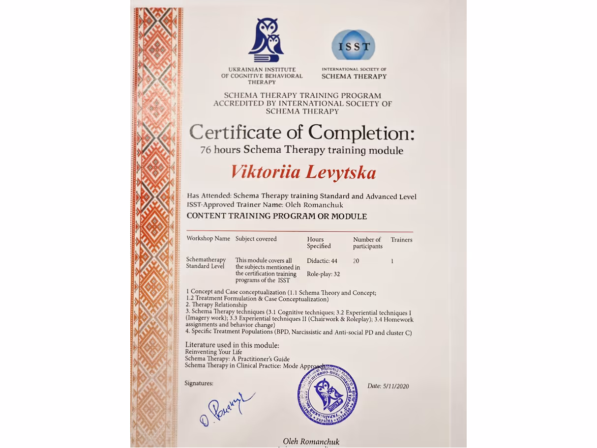 Міжнародна сертифікаційна программа зі схема-терапії (ISST), 2020 р.