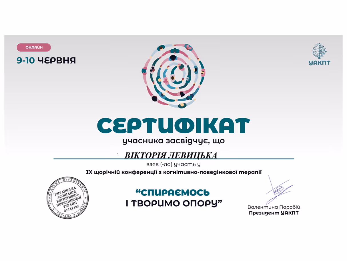 Член Української асоціації когнітивно-поведінкової психотерапії (УАКПТ)